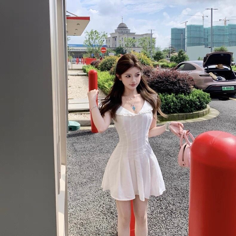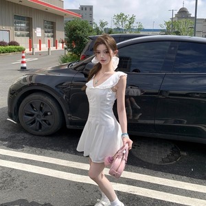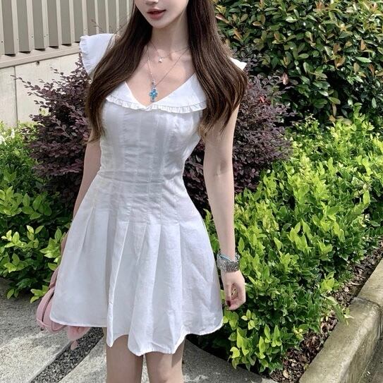 ホワイト♡フリル襟付きフレアミニワンピース