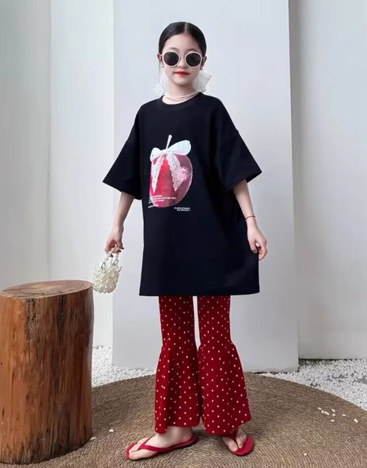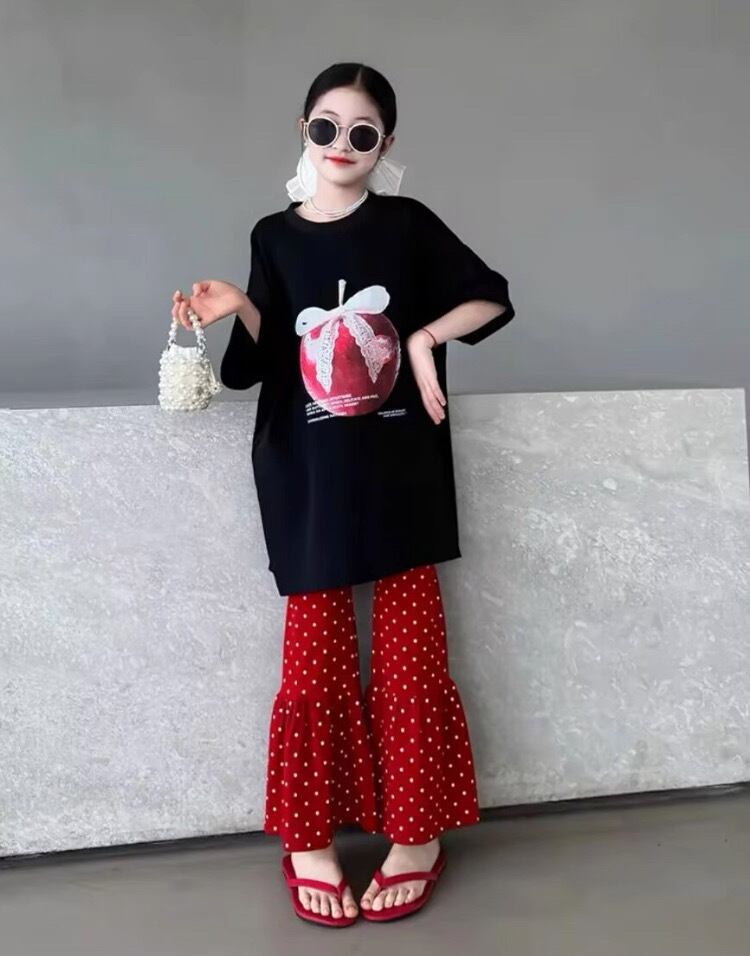 130~180♡オーバーサイズTシャツ+ドット柄パンツセット