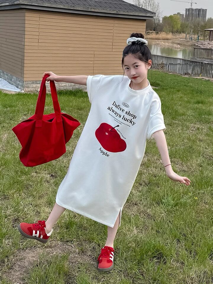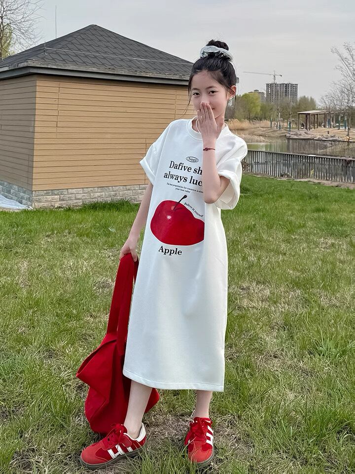 130~170♡オーバーサイズりんご♡Tシャツワンピース
