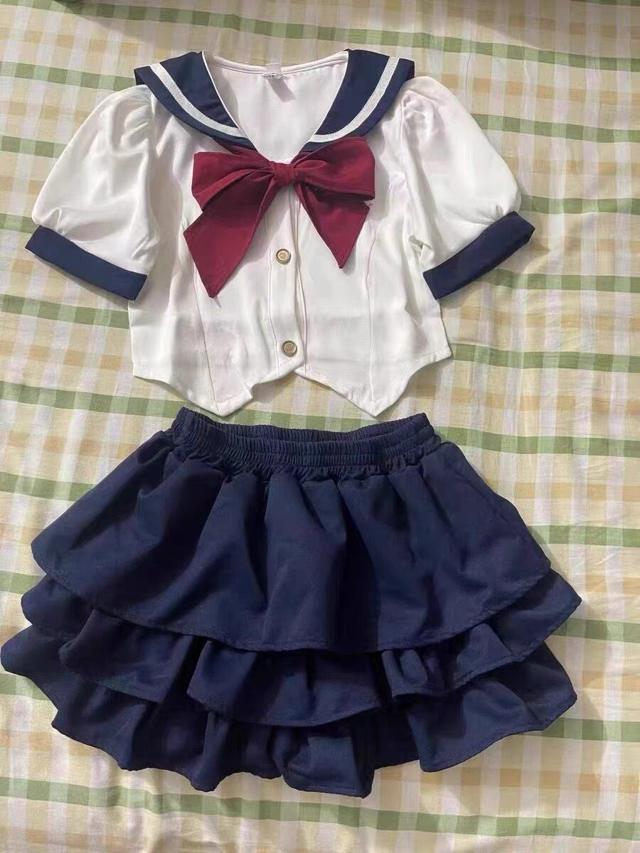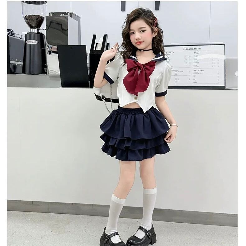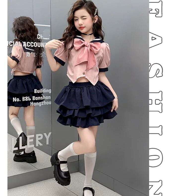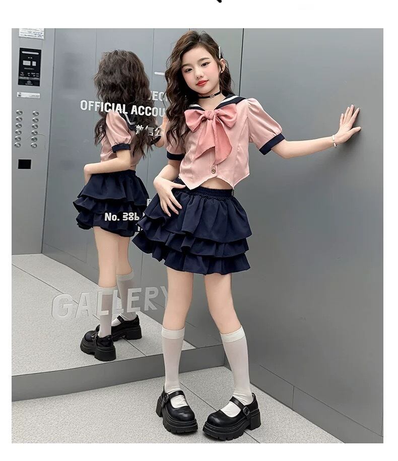 2色♡120~170♡ミニ丈制服風トップス+フリルスカートセット