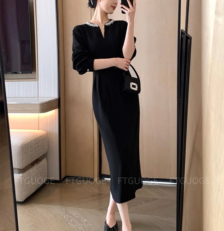 FTGUOGE正規品♡ビジューVネックタイトブラックワンピース