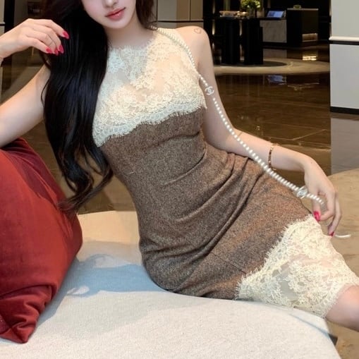 ミドル丈♡オーガンジーレースドッキングワンピース